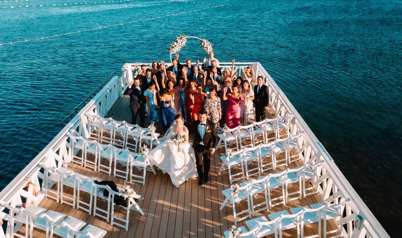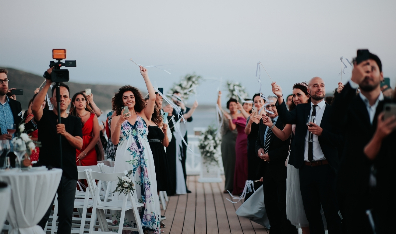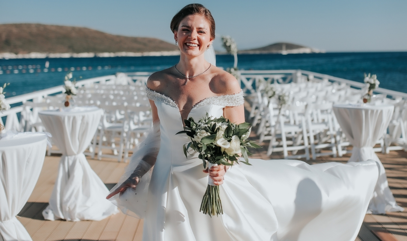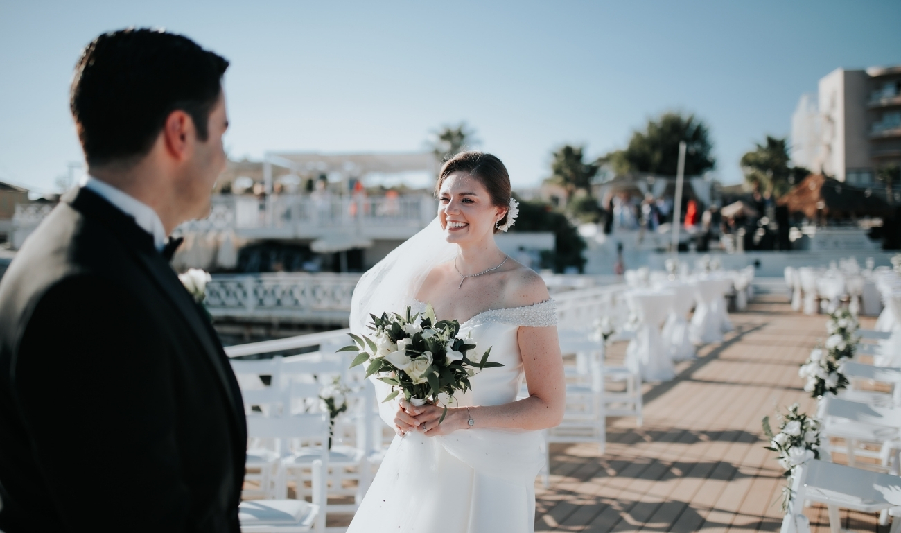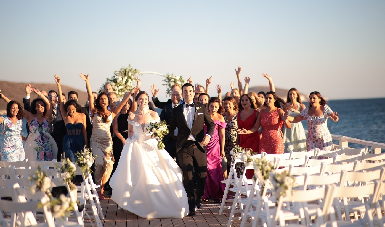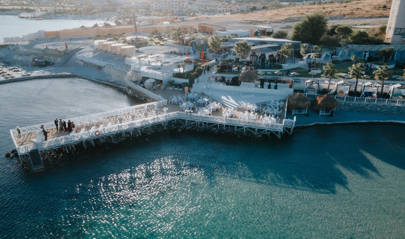 Misafirler, ellerindeki beyaz kurdeleleri dans ettirirken, çift el ele yürüdü… Juliana’nın gözlerindeki ışık, Cem’in duruşundaki asalet ile birleşince ortaya saf bir aşk masalı çıktı. 🌸💍 Sahilde yükselen zarif ışıklar, kahkahalar ve mutluluk dolu anlar gecenin ruhunu yansıttı.